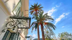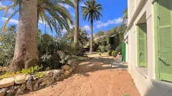 Le vaste séjour avec cuisine américaine ouverte sur la salle à manger s'étend naturellement vers une terrasse de 26 m², menant à un jardin privatif de 447 m² — un véritable écrin de verdure agrémenté de palmiers, idéal pour recevoir, se détendre ou profiter du climat azuréen en toute intimité.