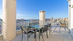 Au cœur du Vieux-Port de Marseille, ce penthouse occupe le dernier étage d'un immeuble de standing récemment ravalé.