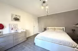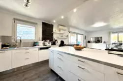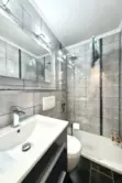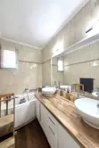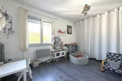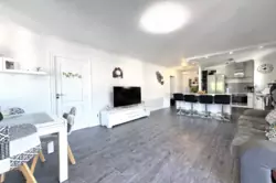 L'espace ouvert salon-salle à manger, doté d'une cuisine entièrement équipée, s'étend sur 34 m², créant un lieu lumineux et accueillant, idéal pour la vie quotidienne ou pour recevoir des invités. La chambre principale dispose d'une douche à l'italienne, d'un meuble vasque et d'un WC privatifs. Deux chambres supplémentaires partagent une élégante salle de bain avec baignoire et double vasque, tandis qu'un WC séparé supplémentaire apporte un confort pratique.