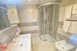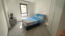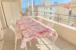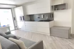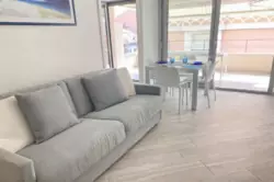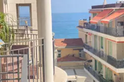 En plein cœur de Menton, à quelques pas de la mer, cet appartement au septième étage est baigné de lumière grâce à son exposition sud-ouest et bénéficie d'une vue sur la mer. Officiellement un deux-pièces, il a été aménagé pour inclure une deuxième chambre, créant un agencement pratique de trois pièces. L'entrée ouvre sur un vaste séjour avec une cuisine ouverte haut de gamme entièrement équipée. La chambre principale dispose d'un grand placard intégré.
