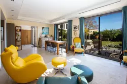 Grand Séjour/Cuisine/Salle à Manger ouvrant sur terrasse et jardins