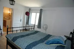 En rez-de-jardin, accessible depuis la maison et également avec une entrée indépendante, une 4ème et grande chambre avec salle de bain et wc - idéal pour un espace invité, pour une location ou pour du télétravail.