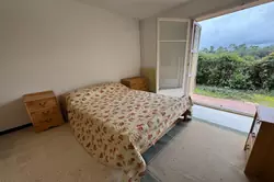 Au rez-de-jardin se trouve 2 chambres avec accès terrasse couverte et jardin, une salle de bain avec wc et des wc séparés. Rangement sous les escaliers.
