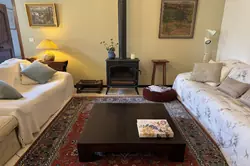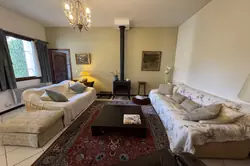 La maison, en bon état et très lumineuse, est composée comme suit :une entrée, un séjour lumineux avec cheminée et de beaux volumes sous le plafond, une salle de bain avec baignoire, douche, lavabo et wc, une belle cuisine de style provençale avec un espace repas, un salon très agréable avec des canapés tournés vers le poêle, et une spacieuse chambre avec accès jardin. Depuis le séjour, il y a un accès à une grande terrasse couverte qui mène ensuite à une chambre séparée (ancienne cuisine d'été de 10 m2).
