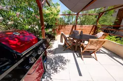 Les deux chambres donnent accès à un grand jardin fleuri, intime et joliment aménagé, avec pergola, coin barbecue et espace détente.