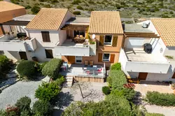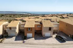Depuis le salon et la cuisine, des portes vitrées coulissantes s'ouvrent sur une grande terrasse (22 m²) avec une vue époustouflante sur la Méditerranée et le lagon.
