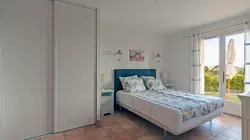 À l'étage, deux autres chambres climatisées, chacune avec salle d'eau et wc ainsi que la jouissance privative d'une terrasse avec une superbe vue sur la campagne et le château de Grimaud.