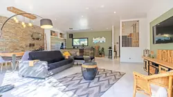 Dès l'entrée, vous serez séduits par sa décoration moderne et une grande pièce de vie de près de 60 m² avec une belle hauteur sous plafond exposée plein Sud. Ses grandes baies à galandage prolongent naturellement l'espace de vie vers la terrasse de 70 m², idéale pour profiter de moments conviviaux en extérieur. Une cuisine américaine toute équipée est parfaitement intégrée qui est complétée par un cellier/buanderie ainsi qu'une cave à vin.