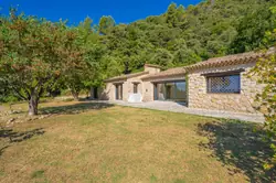 Dans un cadre naturel d'exception, au calme absolu et exposée plein sud, magnifique villa de plain-pied en pierre d'environ 300 m², entièrement rénovée avec des prestations de qualité. Vaste séjour lumineux avec cheminée en pierre et plafond cathédrale, cuisine américaine équipée avec salle à manger attenante. La partie nuit comprend deux suites avec dressing et salle d'eau, deux grandes chambres avec dressings et une salle d'eau supplémentaire.