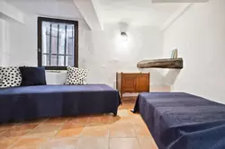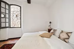 En montant un étage, vous trouvez sur la gauche une très grande chambre avec sa propre salle de bain, ainsi qu'une salle de douche sur le palier. Quelques marches plus haut, sur la droite, se trouve une pièce au plafond assez bas qui est également utilisée comme une chambre, avec fenêtre donnant sur la ruelle calme elle aussi.