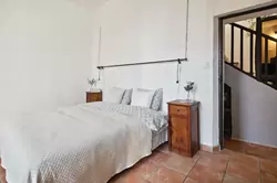 Sur le même palier se trouve la 4ème chambre ainsi que l'accès à la grande terrasse découverte, orientée sud, elle aussi avec une belle vue très dégagée. Une petite pergola permet de faire un peu d'ombre, ainsi qu'un recoin couvert.