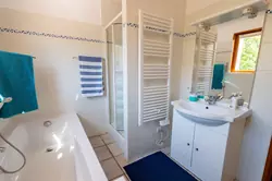 La partie nuit se compose de trois chambres confortables et d'une salle de bains, avec la possibilité d'y installer une seconde. Sur les 110 m² au total, 73,55 m² sont classés en pièces principales. La véranda et la chambre issue de l'ancien garage aménagé sont, quant à elles, comptabilisées en surfaces secondaires.